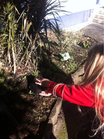 Room 3 - Watering the flower/herb pots near their class that they look after!